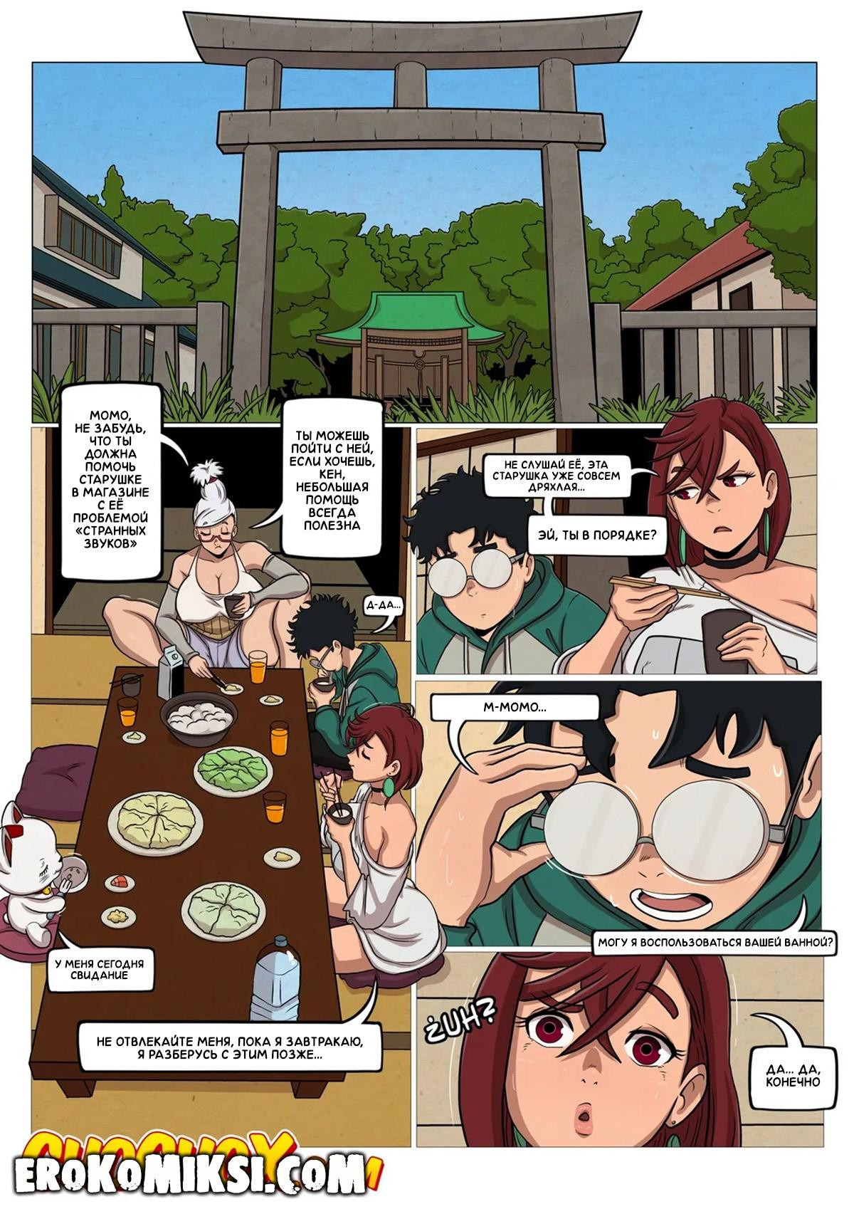 Порно комикс DanDaDan. Охотник за трусиками. Во время обеда у Момо, Окаруна приспичило в туалет и по пути в уборную, он увидел на полу трусики, которые его явно заинтересовали, и он решил предположить, чьи это могут быть трусики, и в тот момент, пока он нюхал трусики, появилась Айра…