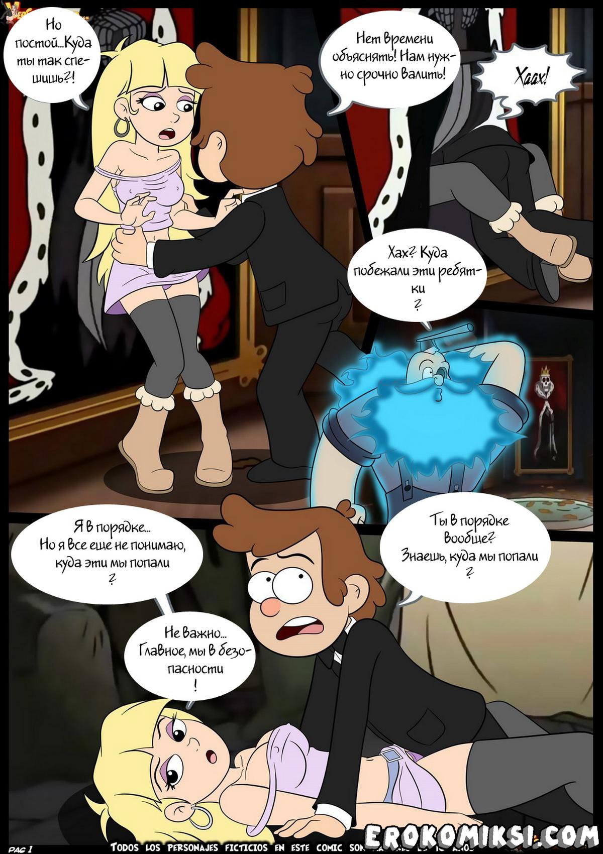 Порно комикс Гравити Фолз. Не верь своим глазам. Наши дорогие посетители представляем вам возбуждающий пародийный секс комикс Гравити Фолз. Многие уже знакомы с главными героями, коим очень нравиться проводить различные расследования и разгадывать тайны. Но их личная жизнь со всеми интимными подробностями всегда оставалась большой тайной. Но сегодня данная история откроет занавес и покажет во всей красе великолепное порно, которое устраивают похотливые герои известного сериала.
